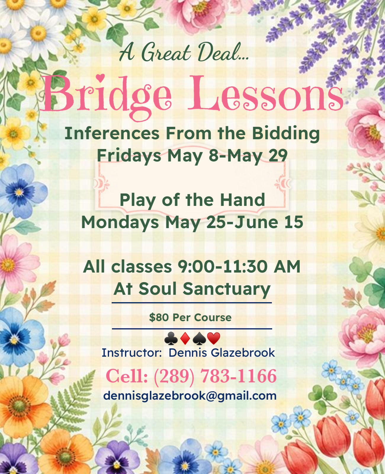 Dennis Glazebrook, a certified ACBL instructor, is offering two courses this spring.
